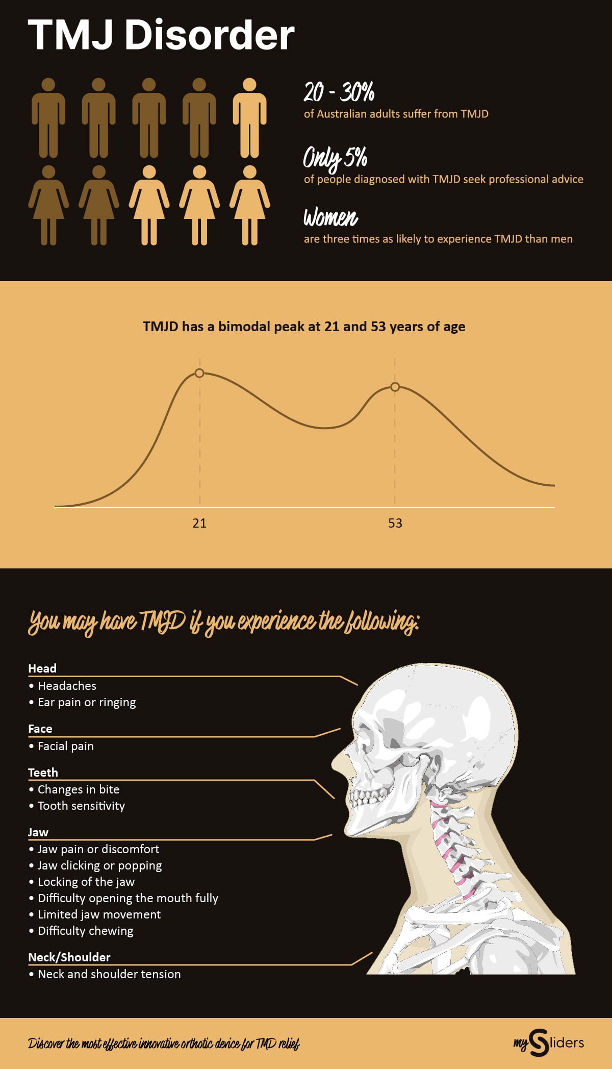 Research suggests that Temporomandibular joint disorder can affect up to 5-12%. There are studies that have reported even higher incidences up to 25%, 33% and even 40% in the general population. Of these patients experiencing TMD, less than 5% seek professional advice and treatment. It is more commonly reported in women, although it can affect individuals of all ages and genders.